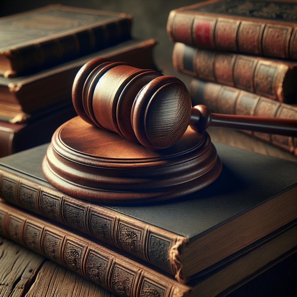Judge's gavel over textbooks.